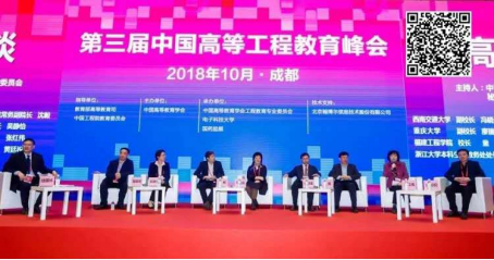 在高端对话环节,西南交通大学副校长冯晓云、重庆大学副校长廖瑞金、福建工程学院校长童昕、浙江大学本科生院教务处处长胡吉明、哈尔滨工业大学本科生院常务副院长沈毅、上海交通大学副教务长吴静怡、四川大学教务处处长张红伟、电子科技大学教务处处长黄廷祝等8名专家发言。他们就新工科内涵建设、课程改革、教师队伍建设、学科竞赛等多方面进行了探讨。对话环节由中国高等教育学会工程教育专业委员会秘书长陆国栋教授主持。