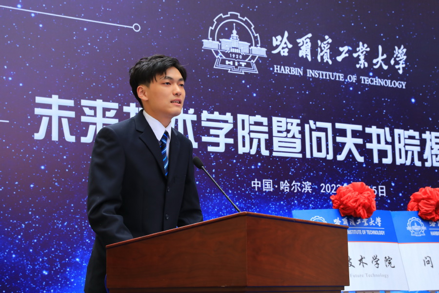 未来技术学院学生代表、2136004班张驰林在发言中分享了一年来在哈工大学习成长的所思所获,表达了作为未来技术学院的新生力量,立志成为未来领军人才的决心和信心。