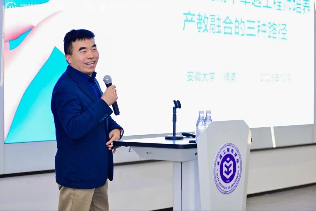 安徽大学教学评估处处长、讲席教授,教育部评估中心首轮和新一轮审核评估专家,国际工程教育专业质量认证ASIIN专家傅勇作了题为《分类发展视角下卓越工程师培养产教融合的三种路径》的报告。报告从高校分类出发,总结产教融合建设的多元实践模式,包括研究型大学的创新引领模式、应用型大学的共建对接以及职业型大学的技能适配模式。最终,明确了分层分类完善卓越工程师产教融合培养模式建设的未来指向。
