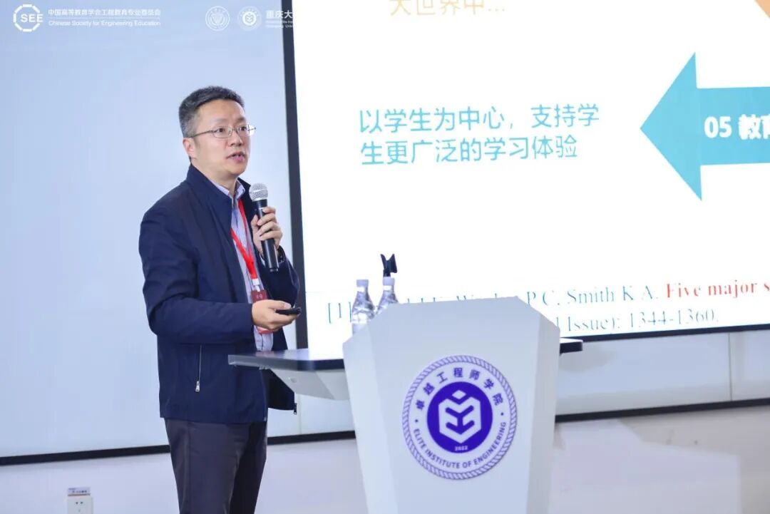 重庆大学本科生院院长、刘猛教授作了题为《人工智能时代工程教育新挑战与重大探索》的报告。他介绍了重庆大学为应对人工智能时代的到来,在人工智能通识核心课建设、课程体系重塑、资源建设、专业革新四方面开展的创新实践,并提出了要强化评价标准向原创性和产业转化度侧重,培养重点向AI协作策略和伦理判断力侧重,核心能力向问题洞察力和跨域迁移能力侧重的未来变革方向。