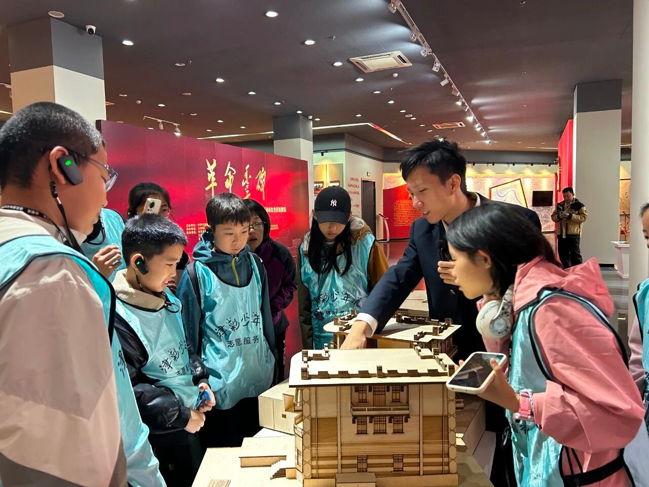“十四五”期间,天津城建大学创新打造革命丰碑展馆,首创“以建筑说党史”的育人新范式,累计接待近千个支部,10万余人次参观学习,打造集学习、展示、宣讲、研究于一体的综合性红色资源共享平台。图为学校利用复原旧址模型,向参观者生动讲述红色建筑承载的革命故事。(图片来源:天津城建大学)
