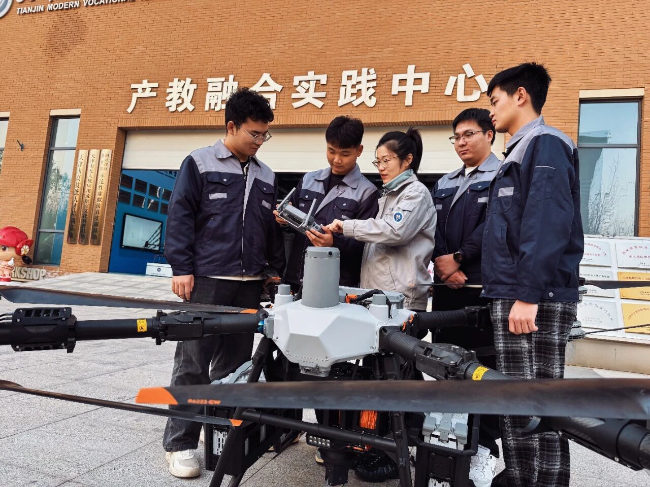 “十四五”期间,天津现代职业技术学院无人机专业群建设成果显著,构建了“产学研训创”五位一体的数智化实训生态,获批国家级生产实践中心,为天津云圣智能科技有限责任公司、天津飞马机器人科技有限公司等无人机区域龙头企业输送专业人才,为我市低空经济发展提供了坚实的人才与技能支撑。(图片来源:天津现代职业技术学院)