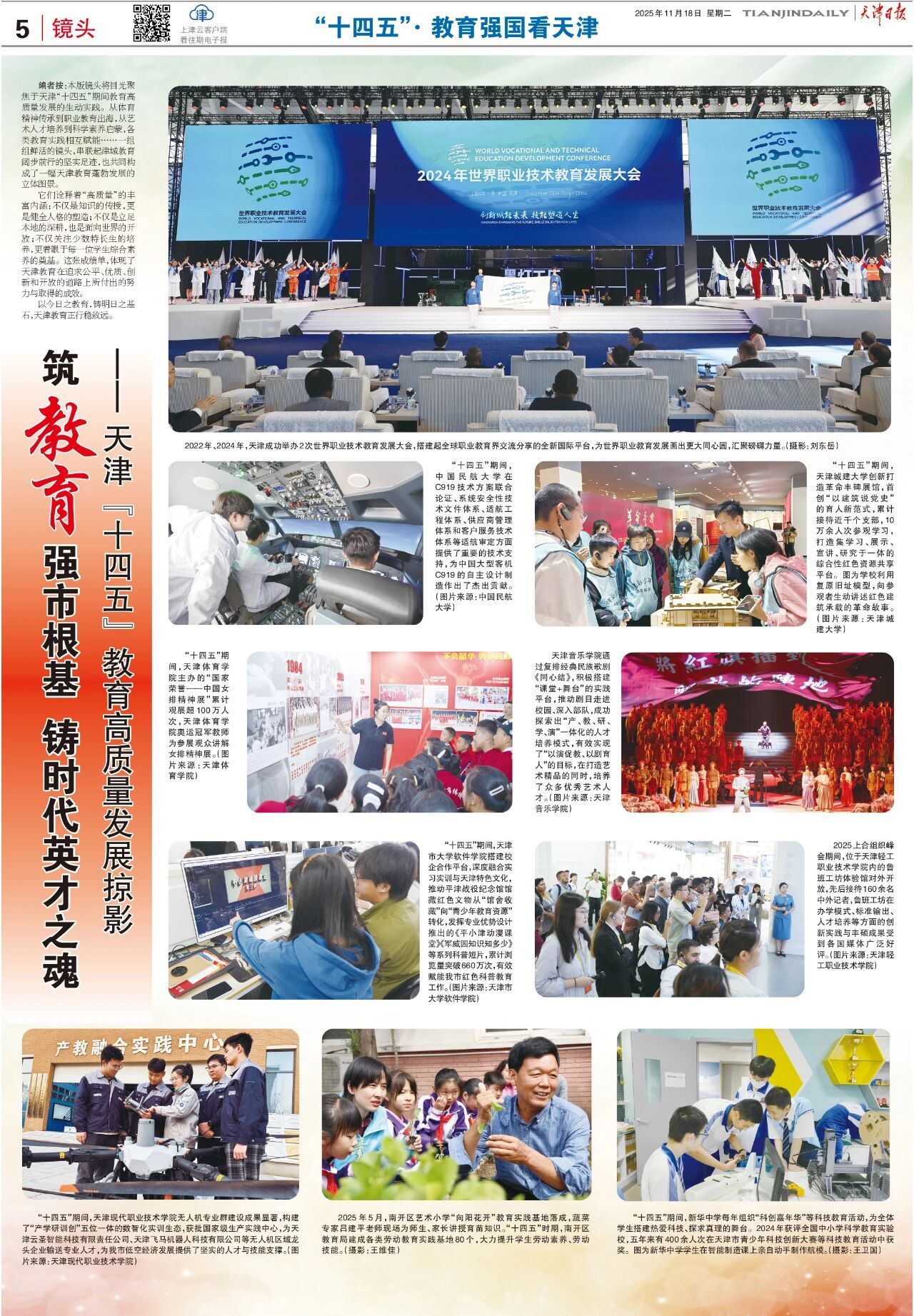 编者按:本版镜头将目光聚焦于天津“十四五”期间教育高质量发展的生动实践。从体育精神传承到职业教育出海,从艺术人才培养到科学素养启蒙,各类教育实践相互赋能……一组组鲜活的镜头,串联起津城教育阔步前行的坚实足迹,也共同构成了一幅天津教育蓬勃发展的立体图景。