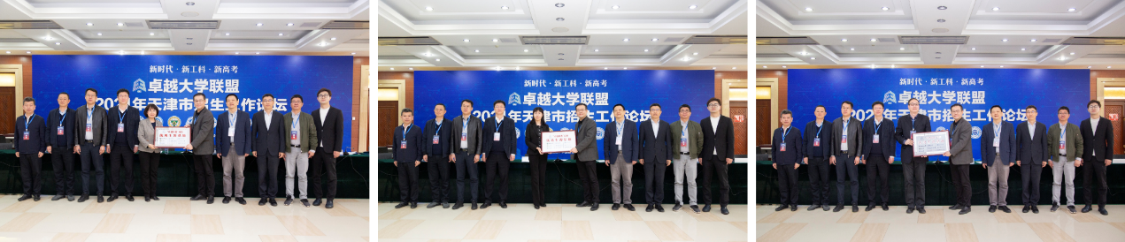 为表达诚挚感谢,促进合作交流,卓越大学联盟向天津市教育招生考试院授予了《卓越大学联盟高校最佳合作单位》牌匾,向各重点中学授予了《卓越大学联盟优秀生源基地》牌匾。