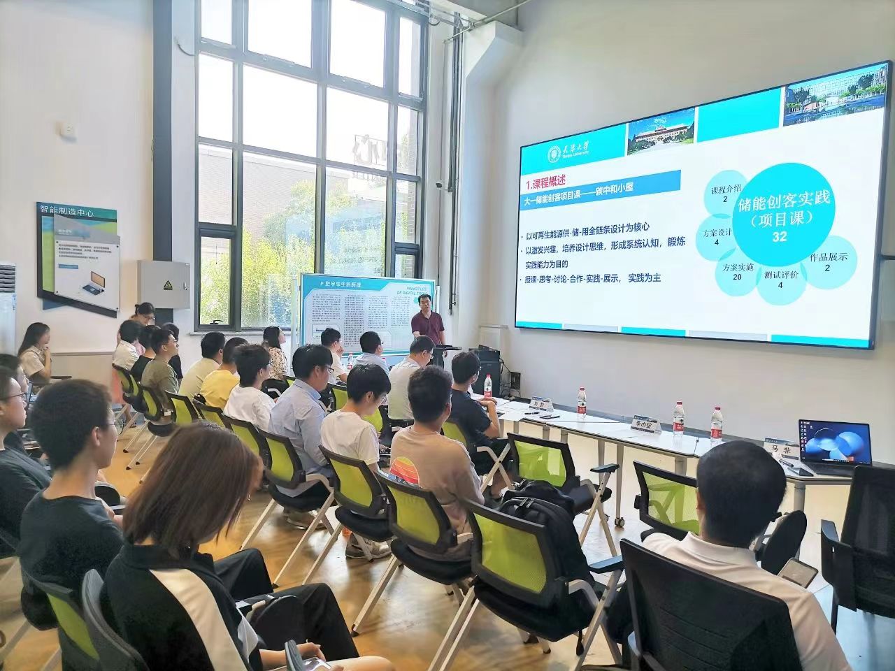 2023年6月24日上午,天津大学储能科学与工程专业2022级本科生新工科项目制课程《储能创客A》结课展示在北洋园校区智能制造中心顺利举行。机械学院能源与动力工程系主任梁兴雨教授,化工学院黄振峰教授,自动化学院何佳伟副研究员,机械学院刘智副教授,新工科教育中心办公室副主任林佳妮,国家储能平台办公室主任张寿行,《储能创客A》教学团队机械学院马非,国家储能平台李巾锭,王悦阳、丁永鑫、樊亚丽等出席了此次活动。本次结课答辩由李巾锭主持。