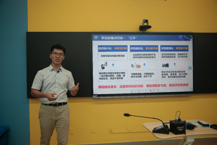 工作坊四由天津大学机械学院《控制理论基础》课程负责人宋康主持,主题为《“一干两翼两平台”<控制理论基础>课程建设:师生共建的闭环系统》。从当前面临的知识碎片化、求知被动化、实践套路化等难题出发,践行“一干两翼两平台”,以实际项目为授课“主干”,采用多元化教学模式,将理论知识应用于工程实践;通过设置课内比赛,提高参与度和获得感;建设数字孪生仿真平台、实物实验平台,解决建设成本难控等问题问题。并现场进行“无人车竞速”“机器人打乒乓球”项目演示,同时邀请合作企业加拿大Quanser中国区负责人王薇分享全球工科教学案例。