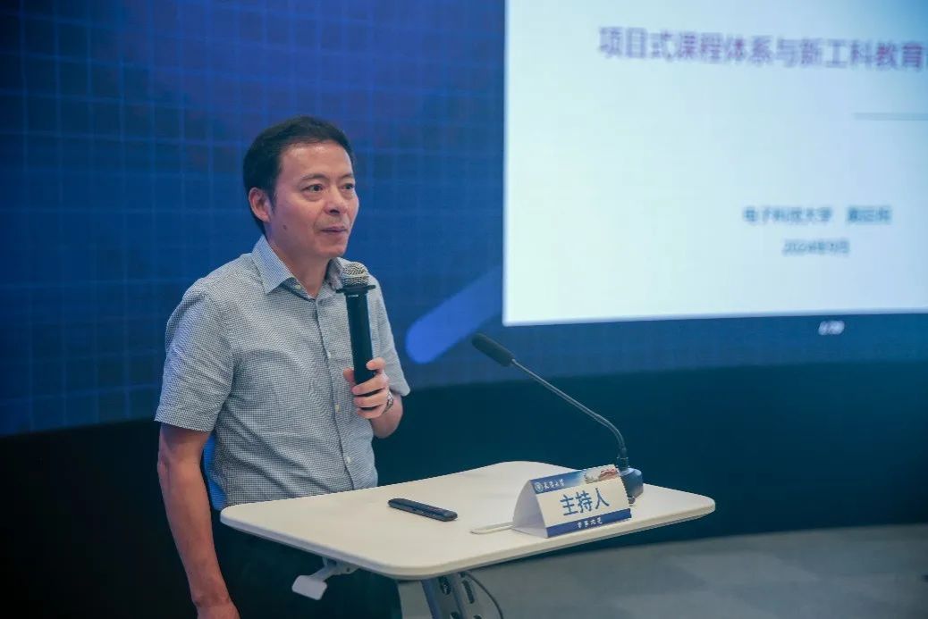 电子科技大学教务处处长黄廷祝带来题为《项目式课程体系及学校新工科教育整体设计与实践》的报告,详细介绍了电子科技大学项目式教学的改革成果和落地方案,建立“唤起好奇、激发潜能”为核心的全新培养方案,实施新工科教育改革一揽子计划,构建逐级挑战新工科项目式课程体系,把“创新创造、知识综合与集成能力培养贯穿全过程”的理念通过系统的基于项目的课程在“第一课堂”真正落地。