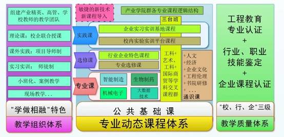 不断深化专业群、产业群、学科群与现代产业学院群“四群互动”,吸纳整合产业优势资源,以建设新工科一流专业为目标,打造交叉融合的高水平课程群,不断深化“三台班”协同育人新模式,建构面向新兴产业需求的跨学院复合型人才培养模式。