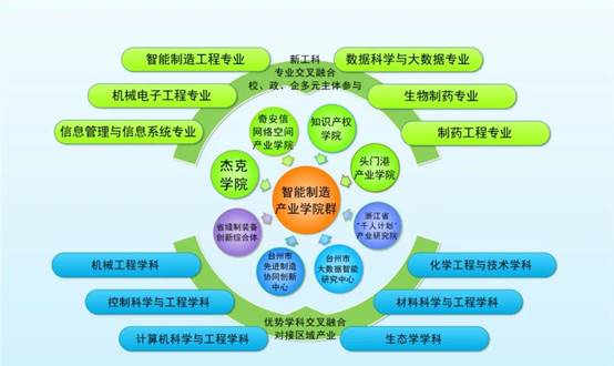 (3)对接台州七大“千亿产业”,建成校政企、校企、校政等多类型现代产业学院。如联合临海市人民政府和头门港经济开发区管委会,成立台州学院头门港产业学院。联合杰克缝纫机股份有限公司成立杰克产业学院。