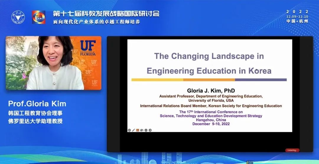 韩国工程教育协会理事、佛罗里达大学助理教授Gloria Kim作了题为“The Changing Landscape of Engineering Education in Korea”的报告。针对韩国教育系统和劳动力下降的问题,韩国做了许多努力。一是在2019年8月推行了大学改革政策。二是设立工程教育创新中心(innovation centers for engineering education, ICEE)并加强工程项目的多样性和包容性——尤其是关注女性在工程项目的表现。三是劳动力发展,为未来培养工程师。