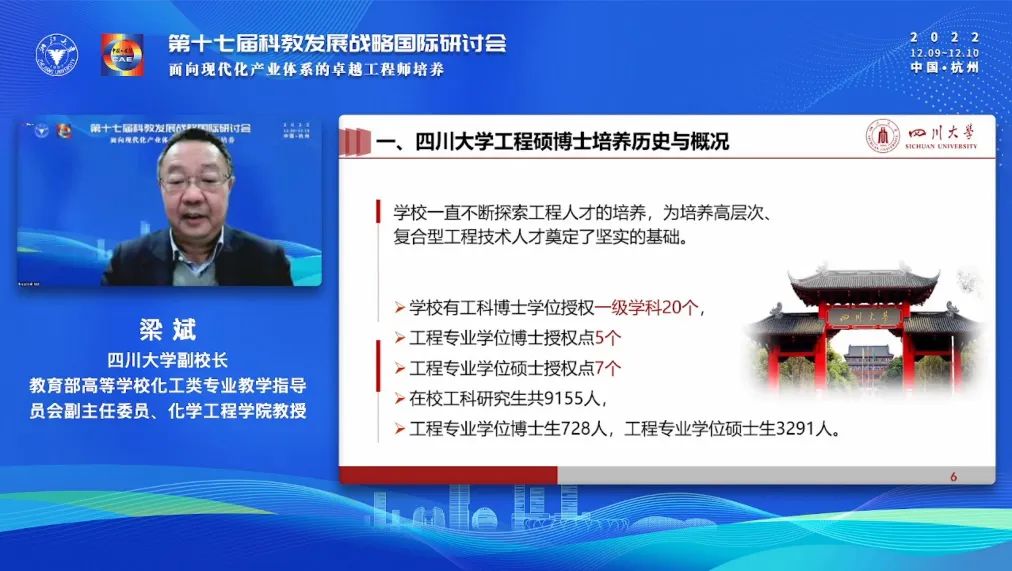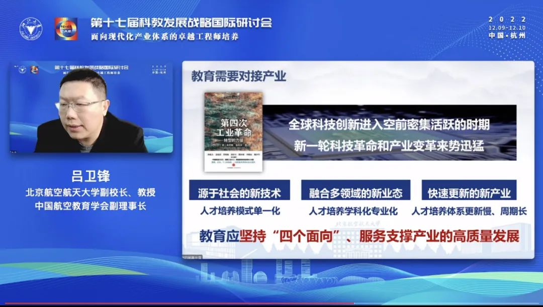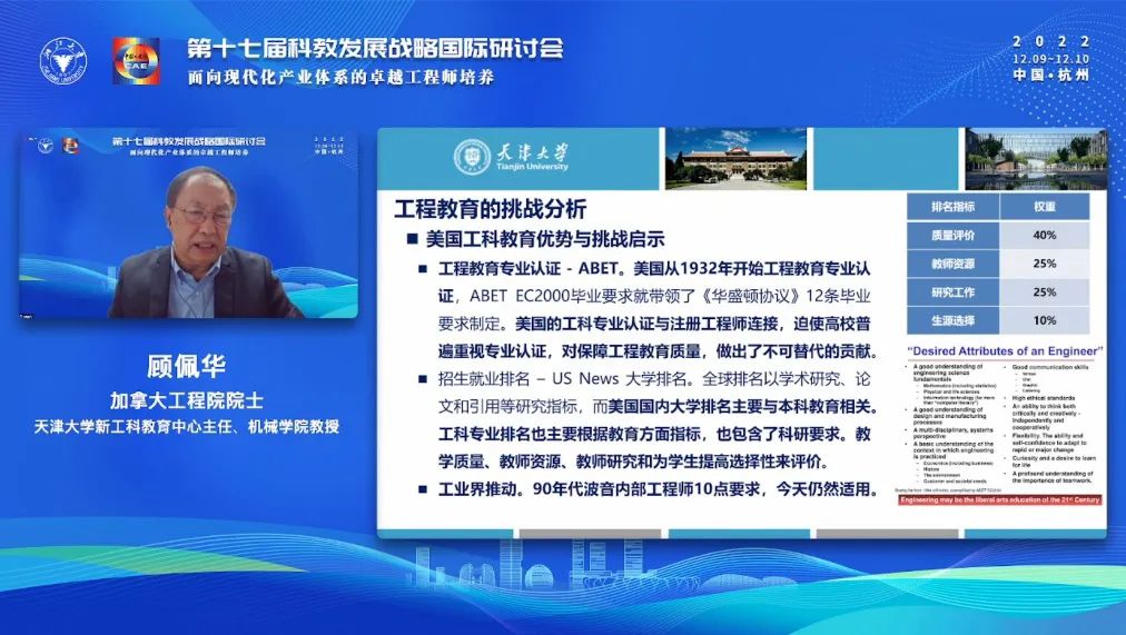 2022年12月9日至10日,面向现代化产业体系的卓越工程师培养——第十七届科教发展战略国际研讨会以线上线下相结合的方式在浙江大学成功举办。本次研讨会在科技部战略规划司、教育部高等教育司以及中国高等教育学会的支持下,由浙江大学、中国工程院教育委员会主办,中国高等教育学会工程教育专业委员会、浙江大学社会科学研究院协办,浙江大学中国科教战略研究院、《高等工程教育研究》编辑部、《科教发展研究》编辑部、之江实验室智能教育研究中心承办。来自国内外高校、机构、企业的参会人员围绕“面向现代化产业体系的卓越工程师培养”主题进行了研讨和交流,从产教联盟、课程改革、师资队伍、认证标准等多个维度探讨我国的工程教育人才培养模式。